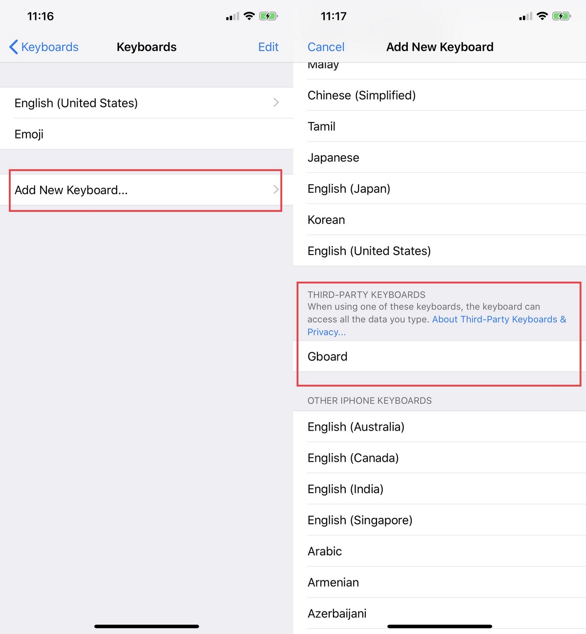 - Scroll down until you see the section marked “Third-Party Keyboards”