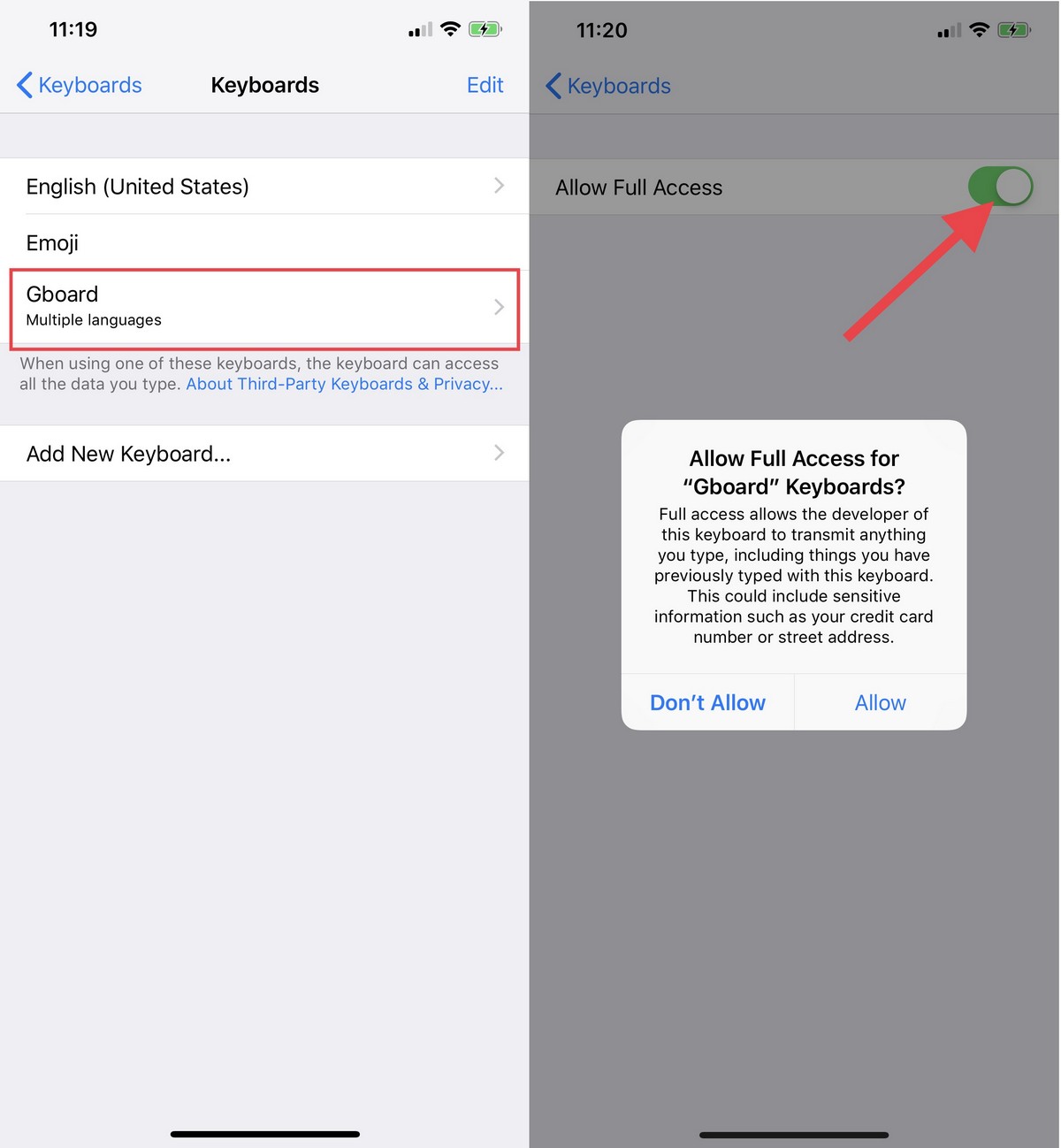 Once your keyboard has been successfully downloaded and installed and you’ve granted it full access, here’s how you can use it with your iPhone. You can actually have multiple keyboards installed at once and switch between them depending on your preferences.