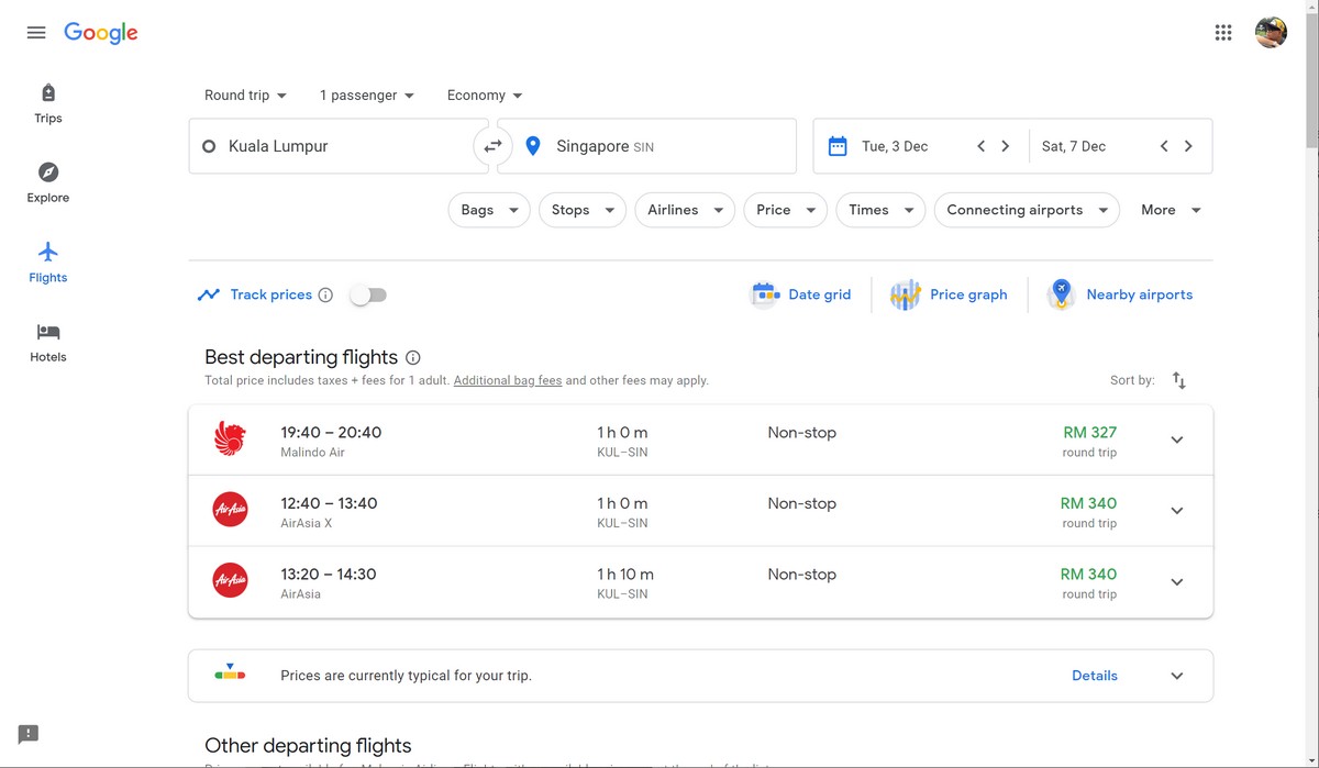 - You can refine your search by going through the various filters, where you can select preferred airlines, whether or not the flights will give free luggage allowance, the time the flights depart, and so on